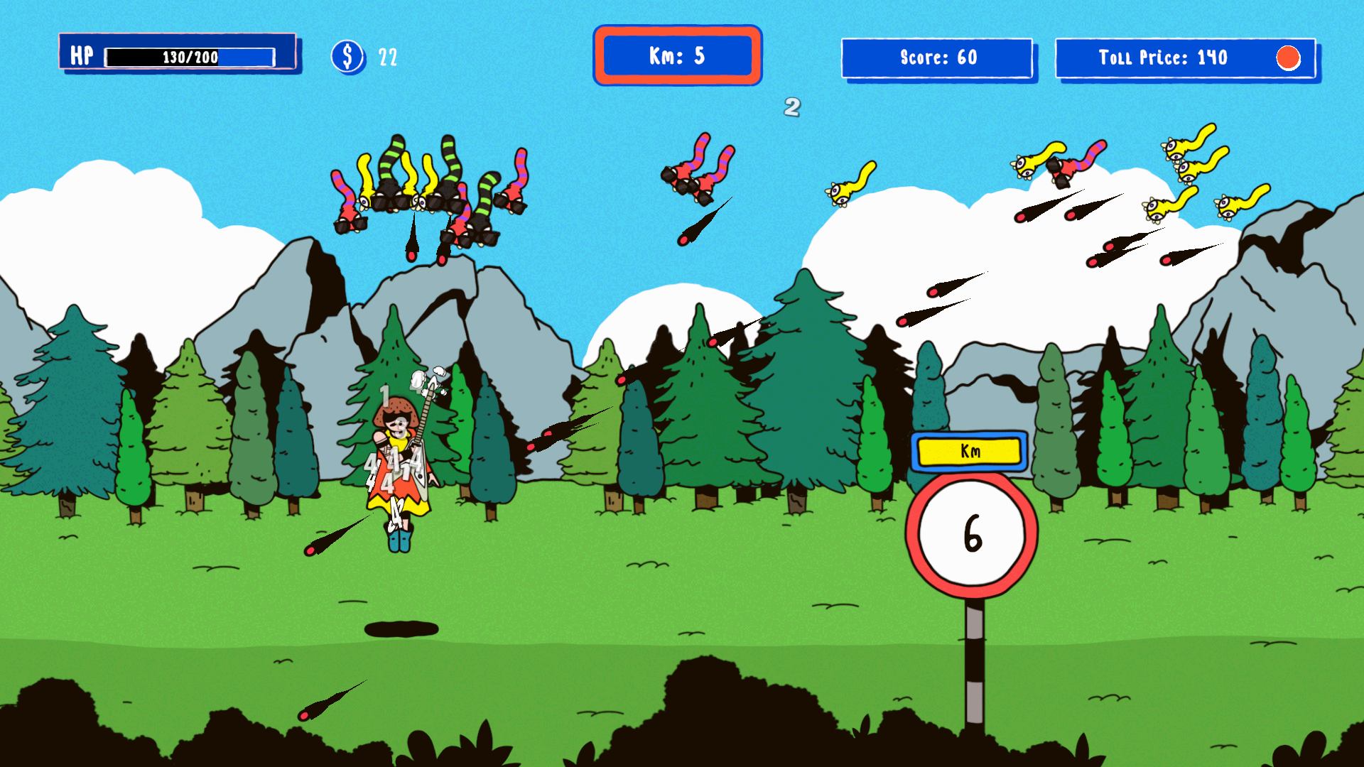 Colete cartas raras ao longo da sua run para customizar completamente seu estilo de jogo — aumente sua cadência de tiro, adicione projéteis extras, ou desbloqueie habilidades devastadoras. Mas cuidado: cada quilômetro tem um pedágio que deve ser pago com os pontos dos inimigos derrotados. Gerencie seus recursos, escolha suas cartas com sabedoria, e descubra até onde você consegue chegar nesta aventura roguelike implacável!